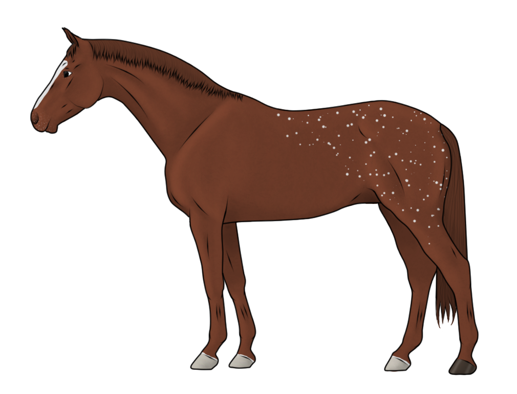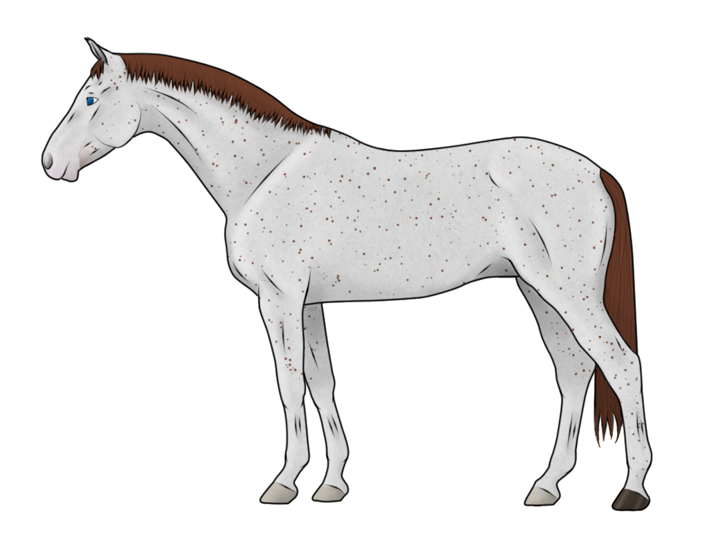 The Appaloosa complex is made up of two genes, Leopard and PATN1, with each combination producing slightly different spotted patterns. It can be affected by the W20 gene, producing a horse with larger white areas or smaller spots.
