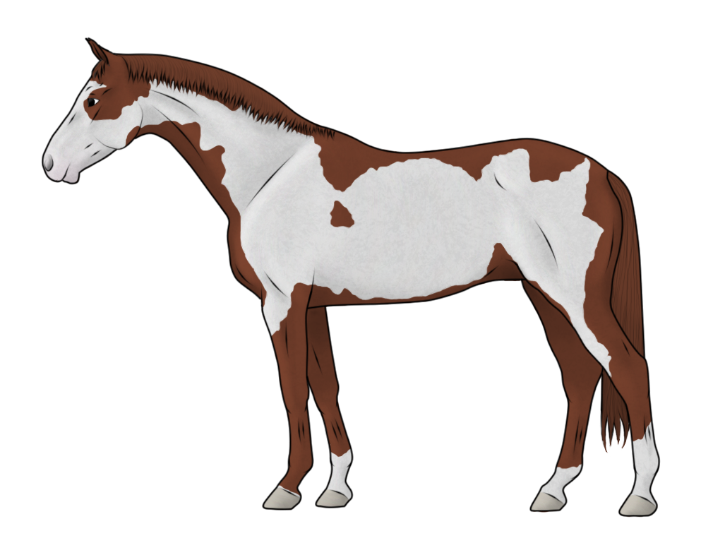 Overo is a dominant gene, producing a spotted pattern on the coat. It can be affected by the W20 gene, producing a horse with larger white areas. Homozygous overo is lethal, producing a stillborn foal.